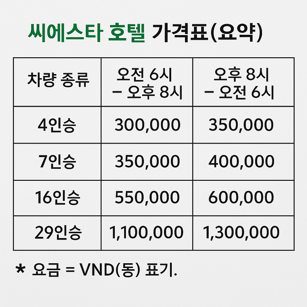 💸 씨에스타 호텔 공항픽업 요금표