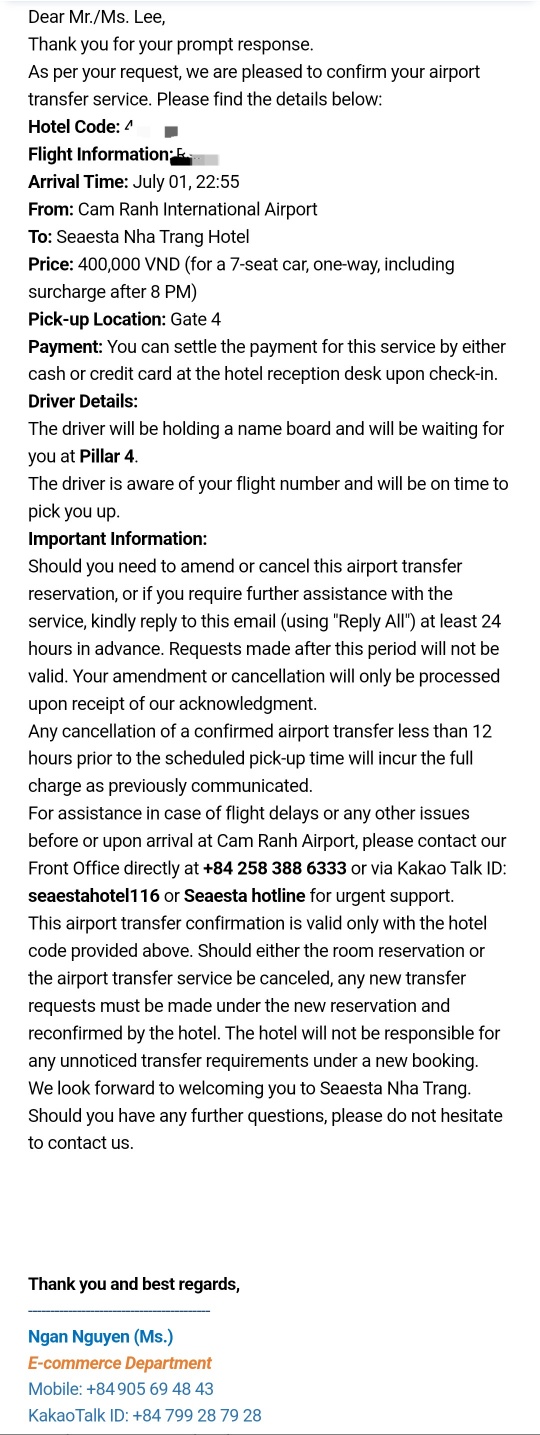 Dear Seaesta Nha Trang Hotel Team,