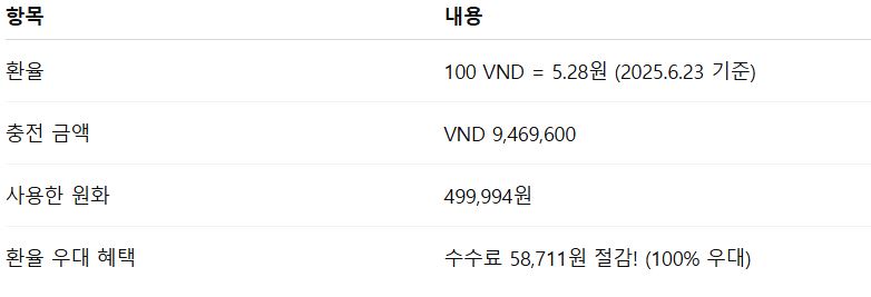 👉 충전 후에는 카드 결제나 ATM 인출 시 모두 이 VND 잔액에서 차감되기 때문에 추가 환전 수수료가 없어요!