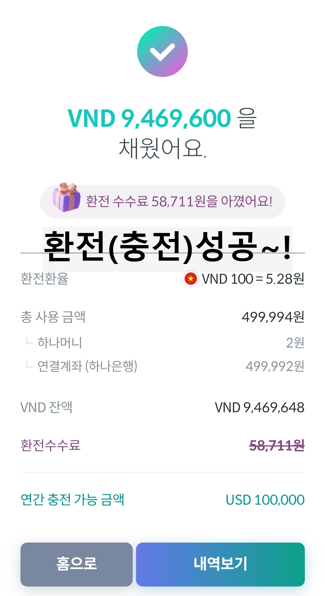 - ✅ 하나페이 앱으로 VND 환전 + 충전, 수수료 완전 면제