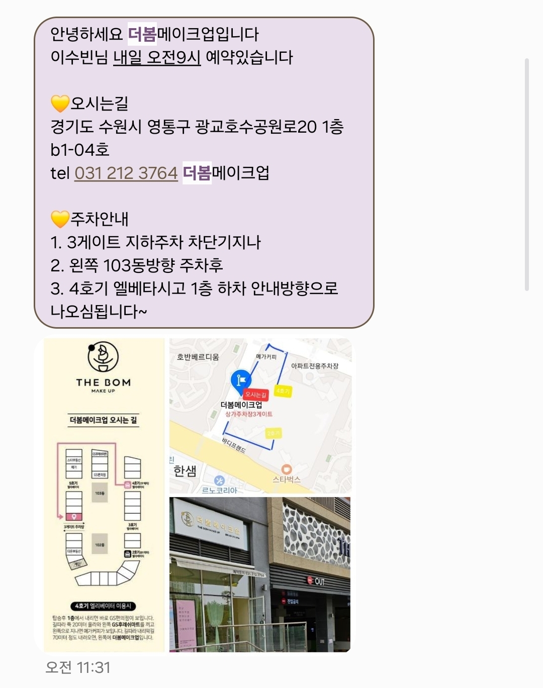 → 엄마 헤어 & 메이크업 + 루희 헤어 포함 전체 소요 시간 - 하루 전날 찾아오는 방법에대해 자세히 알려주셔요