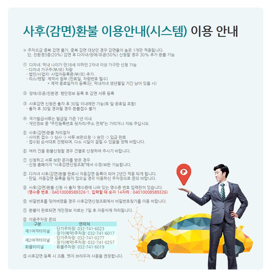 - 사후 신청 → 출차 후 30일 이내 환급 신청 가능