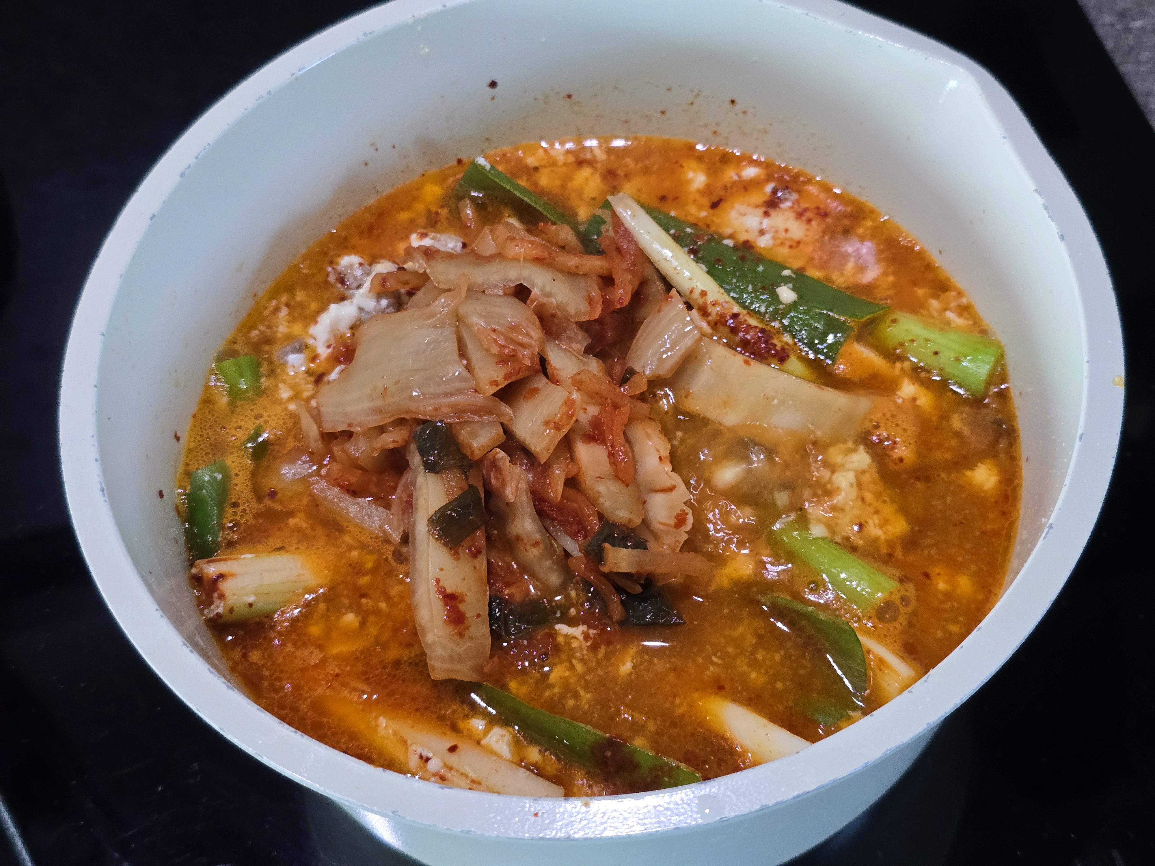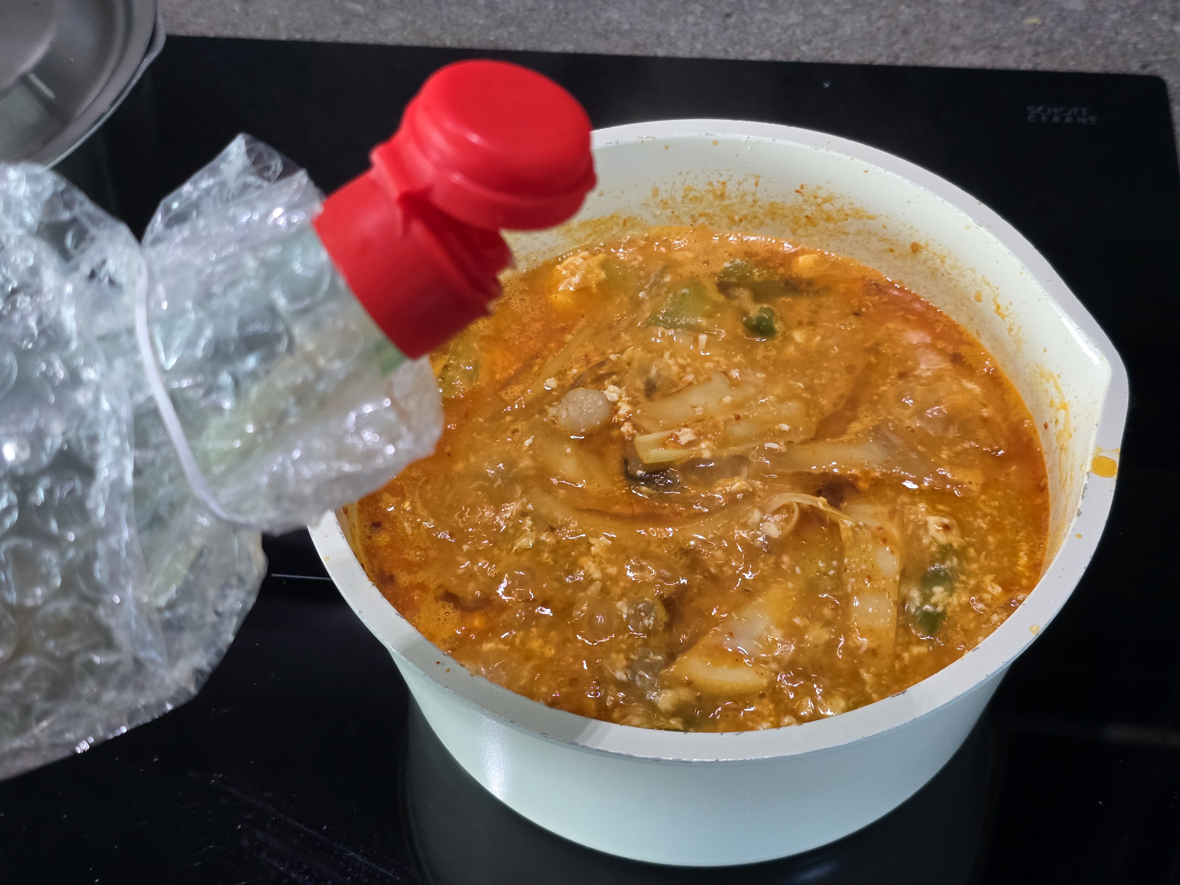 2. 어느 정도 익으면 순두부, 김치, 당면 넣고